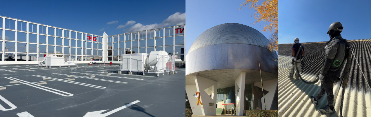 ビル・マンションから戸建て住宅、公共施設に至るまで、さまざまな建物の防水工事に対応しています。屋上、駐車場、ベランダ、バルコニーといった箇所の劣化状況に応じ、ウレタンスプレー防水、シート防水、シーリング工事など最適な工法をご提案。特に、当社が保有するウレタン吹付機によるスプレー工法(*DPCスプレーコート)では、複雑な形状の部位でもムラのない美しい仕上がりと、高い防水性能を実現します。施工後のアフター対応や点検体制も整っており、長期的な安心をお届けします。